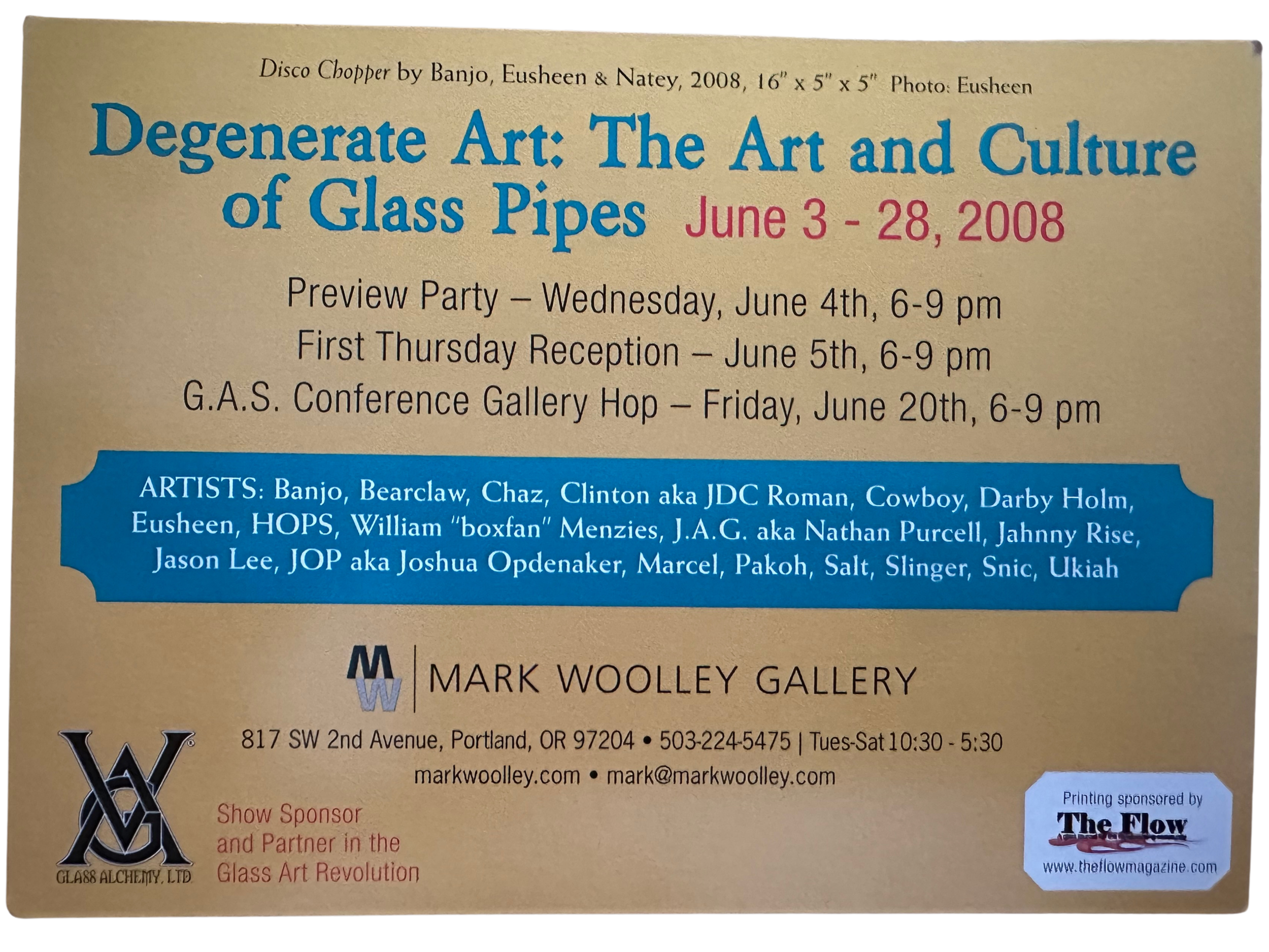 Despite this popularity and the fact that many first-generation pipe makers have been working for more than a quarter century, there has been no major survey of their work outside of the pipe and cannabis world and no attempt to place the work in a larger historical context.